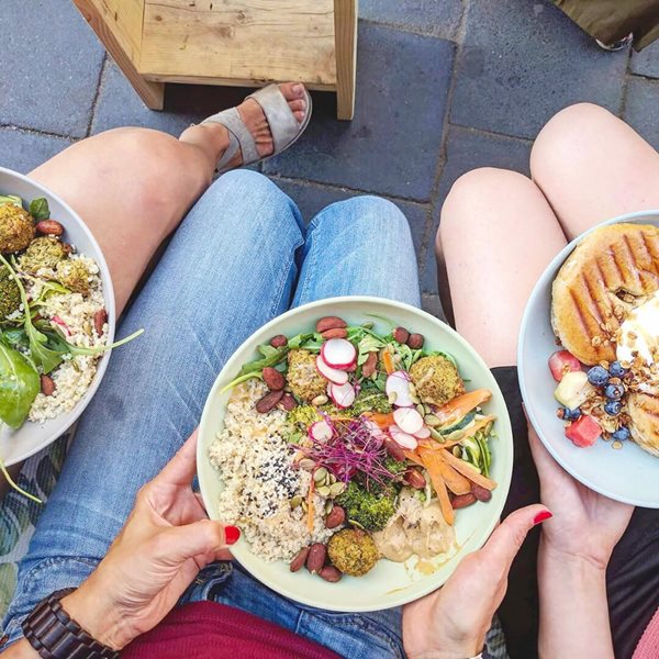 Dans les lieux branchés des grandes villes, vous trouverez toujours de nombreuses options veggie & végan au menu. Le paradis ! Vous êtes invité dans une brasserie classique ? Là aussi, vous découvrirez (presque) certainement un certain nombre de plats végétariens ! Songez à un pesto de pâtes estival, à des fondus au fromage, à un risotto aux champignons ou à une salade au fromage de chèvre (sans bacon !).